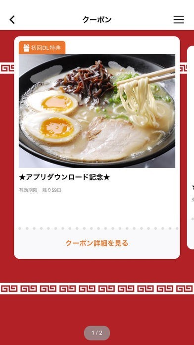 このアプリは、うまいラーメン屋の屋台が軒を連ねる、福岡の街にあるお店です。スタンプカードや、ポイントカード機能がついているので、来店すればするほど、得をします。
