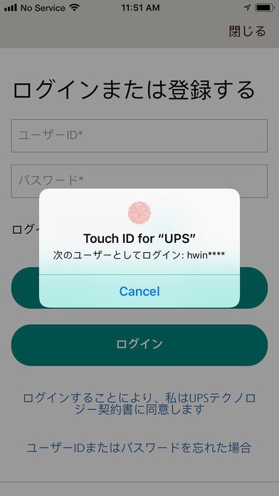 お客様のSNSアカウントを利用して、UPSモバイルアプリケーションにログイン