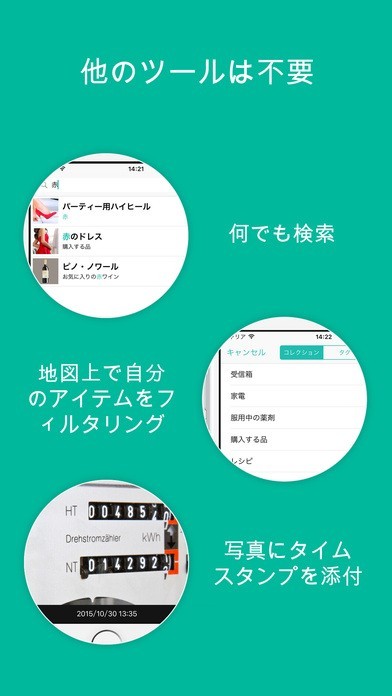あらゆるものを整理し、コレクションできるアプリとして、便利な機能を多数用意しています。地図や写真を添付しながらアイテム登録が行えるため、視覚的にも判りやすく整理できるのが特徴です。