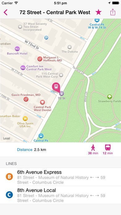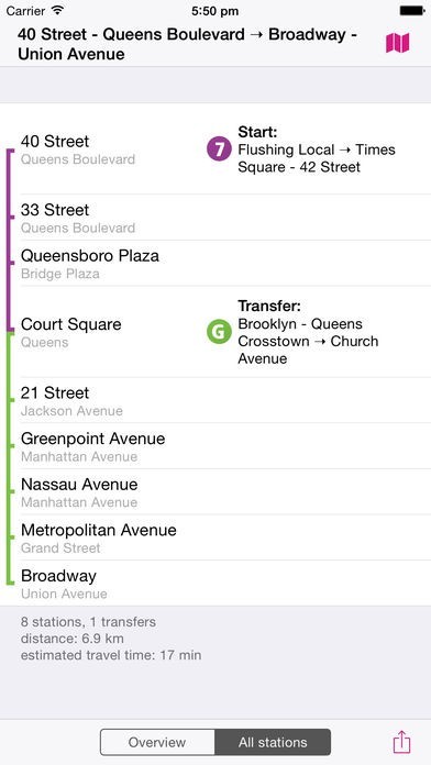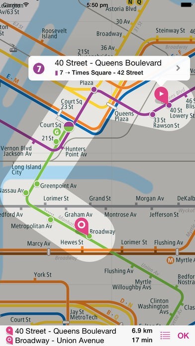App Storeより引用シンプルで見やすいニューヨーク中心部の路線図!