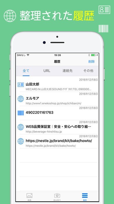 過去のQRコードの読み取り履歴が確認できる