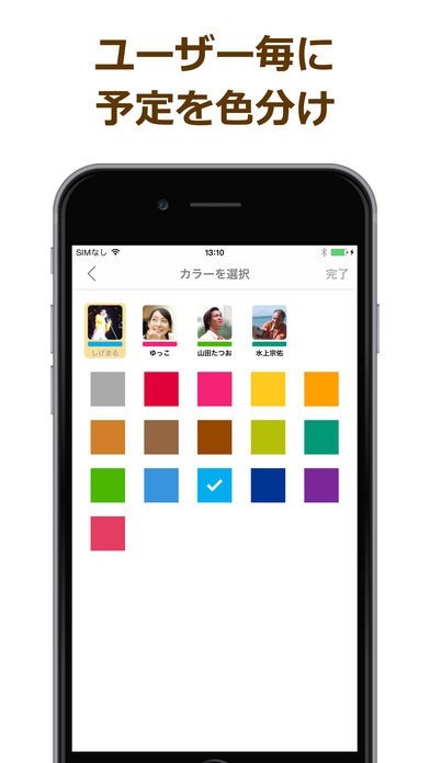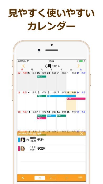 仕事の予定は赤色、プライベートな予定は青色など予定によって色分けすることができます。カレンダーに記載されている内容をチェックしなくても色で全体を把握することが可能です。