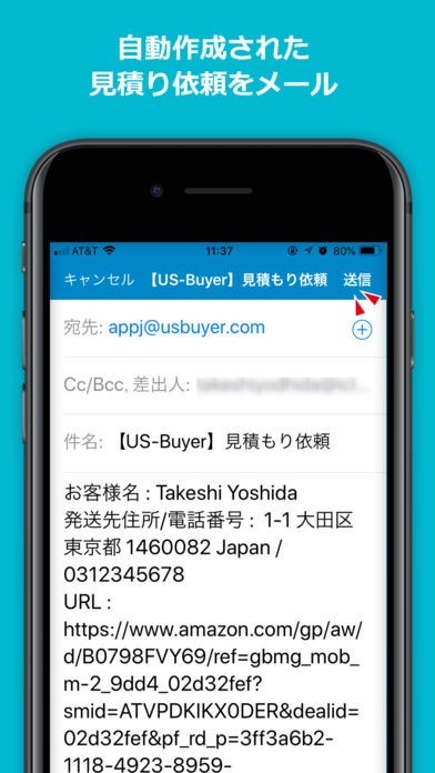 アプリ内のブラウザで商品を見つけたら、そのページを送信するだけで輸入代行のお見積もりいたします。
