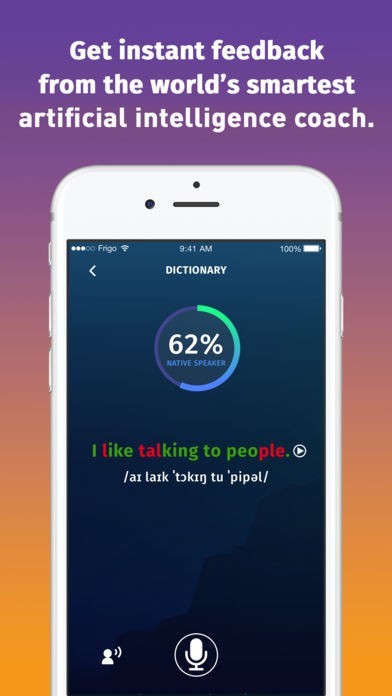 英語の発音をきれいにしたい方にはとてもオススメです。 このアプリでは英語の発音を直してくれる機能を搭載しています。普段英語を勉強する上で英単語やリスニング力は自力で勉強することができます。 しかしながら自分の発音がほんとに正しいかどうかを訂正してくれる人がなかなかいないのが現状ではないでしょうか。 その時に活躍するのがこのアプリです。 アプリに向かって英文を読むことで自分の発音がどれほど正しいか判断してくれます。