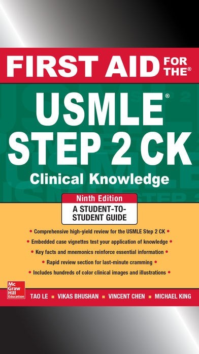 This interactive app is based on the full content of First Aid for the USMLE Step 2 CK (Clinical Knowledge), 9th Edition by McGraw-Hill Education.