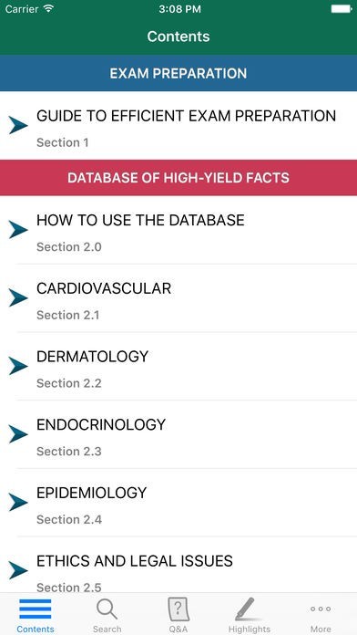 This app is easy to navigate, allowing you to browse the contents or search the text. The powerful search engine allows you to find what you are looking for in seconds. The search tool also shows you suggested words as you type so it is quick and helps with spelling medical terms. You can create bookmarks, notes and multi-colored highlights just like you would do with the book, allowing you to learn and memorize the material with great speed and efficiency. You can also change the text size for easier reading. Also, there is a Q&A section for rapid review as well as vignettes.