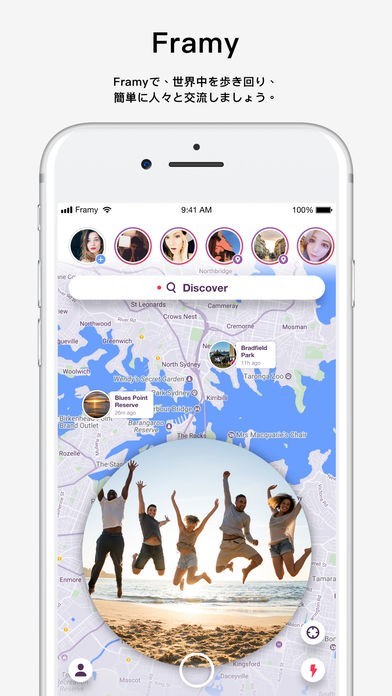 「Framy - Live Your Dreams」はスマートフォンでインタラクティブマップ上に写真や動画を投稿することでほかのユーザーとつながることが出来るコミュニケーションアプリになります。誰でも簡単にコンテンツを作ることができるようになっていて、旅をした場所やおすすめのスポットなどの写真や動画を撮影したらステッカーやエフェクトを使ってデコレーションして世界中に公開することが出来ます。自分が行ってみたいと思っている場所にどんな人がどんな足跡を残しているかを見るのも楽しみ方の一つです。