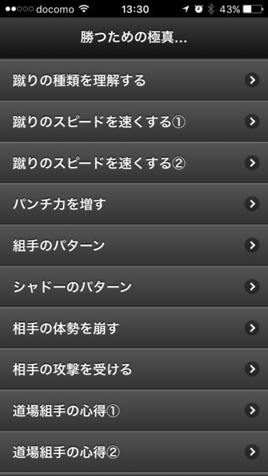 おすすめポイント ・極真で強くなるために必要な要素を学べる! ・フルコンタクトの組手が変わるを実感! ・DVDより断然手軽で良いし、最新iPhoneにも対応!