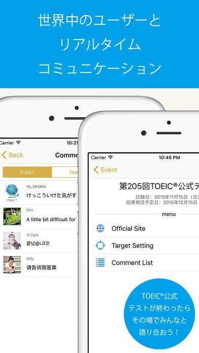 「V-Ranker」はTOEIC対策を行いたいという方に便利なアプリです。 このアプリにはTOEIC模試が無料で受けられるという特徴があります。 TOEIC模試を徹底的に受ける事でスコアアップが期待できるのが良い点です。 模擬終了後には自分がどの位の位置なのか、ランキングによって分かります。 さらに世界中のユーザーとコミュニケーションまで取れるアプリになっています。 他のユーザーの勉強方法などを知りたいといった時にも役立ちます。 つながり機能も付いており、英語力を生かして活躍したいという時にも使えます。