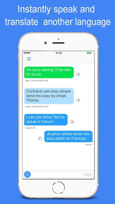 あなたがしゃべった内容を自動でテキストメッセージにおこし、メッセージを送ることができます。さらに、しゃべった言葉を他の言語に翻訳することもできるので、交流の幅が広がります。