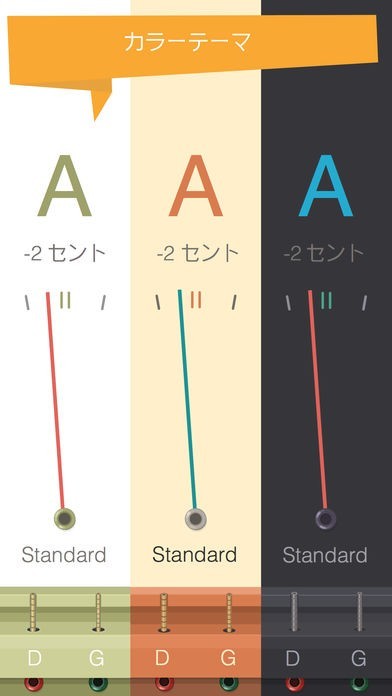 画面の色を自由にアレンジ出来るようになっています。文字や指針の色もお洒落にカスタマイズしていけます。ギターの音に反応するため、チューニングも簡単に行えるでしょう。