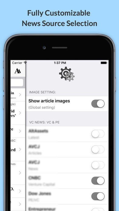 - Individually turn on/off any news sources. (Slide right)