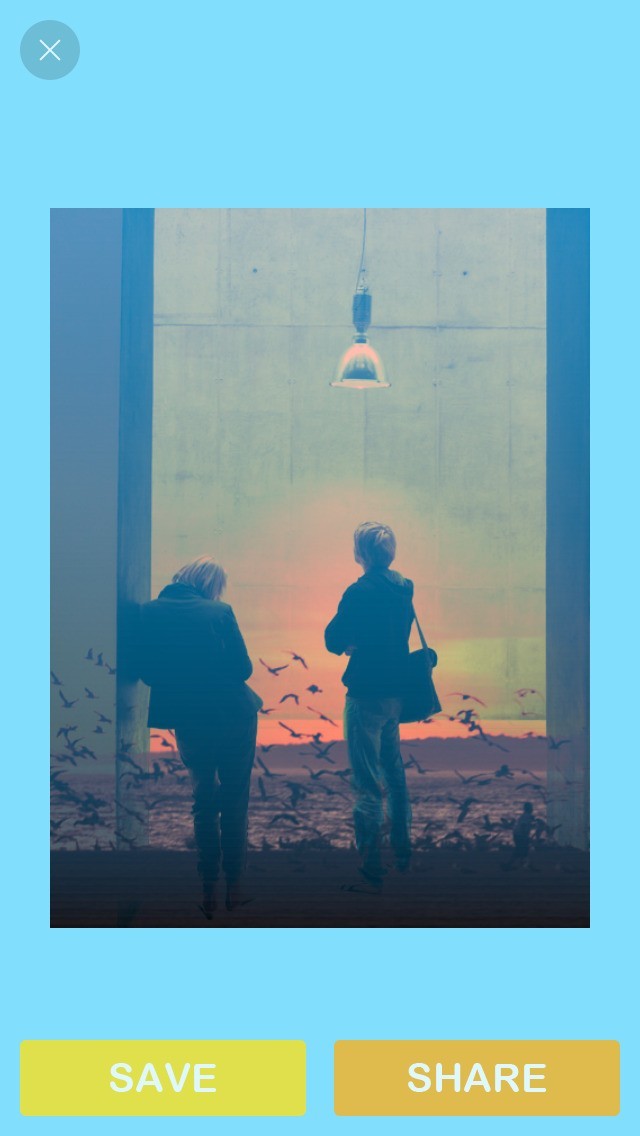 カメラアプリ「PhotoShaker」は、一味違った写真が作りたい時に活躍してくれます。メインとなる写真合成機能はカメラロールから2枚の写真を選び、スマートフォンを振ることで利用可能。自動的にフィルターを適応し、加工写真を作り上げてくれます。フィルターのランダム適応によって、自分では思いつかないような効果が得られるのが楽しいポイント。また、これはと思える写真が出来上がったら、シェア機能からSNSに投稿して、友達に自慢してみてはいかがでしょうか。もちろん保存機能も搭載しており、気に入った画像はホームの背景画像やアイコンなどに利用することができます。