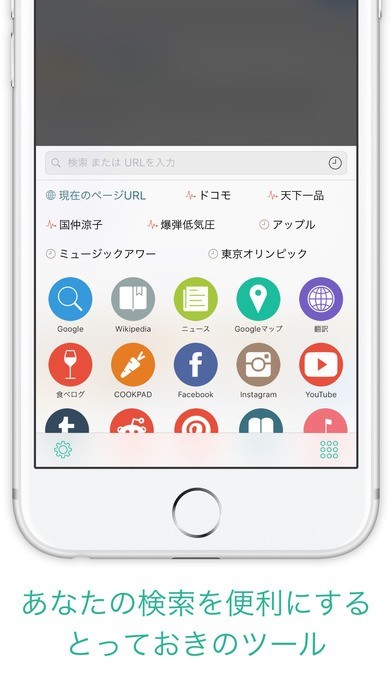 「Eureca」は様々な種類の検索を一つで行える検索アプリです。起動した後に検索したい文字を入力、AmazonやYouTubeなど検索を実行したいサイトのアイコンをタップ!結果がすぐに表示されます。様々なショッピングサイトでの同時検索も可能、買いたいものの値段を比較できるので、ショッピング好きの女性にもオススメです。優秀なオートコンプリート機能を備えているので、注目ワードや履歴の参照も簡単!検索の手間を省くことができます。また、設定から検索対象の追加・削除もできるので、自分が使いやすいようにカスタマイズもできます。ドロップすれば並び替えも可能、使用頻度の高い検索対象は使いやすい位置に移動させましょう。
