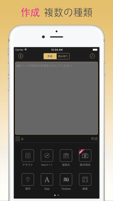 QRの読み取りだけではなく、作成(素材は好きなもので)まで出来てしまう神のアプリ!凄いです。