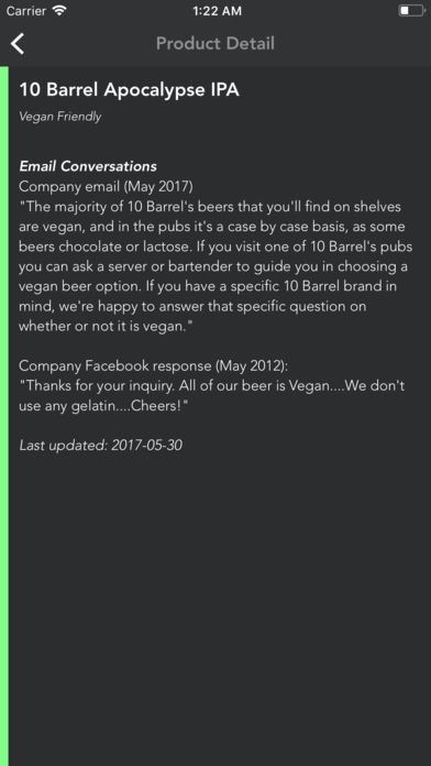 App Storeより引用Vegan alcohol guide powered by Barnivore.