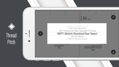 App Storeより引用Thread Pitch gauge is in the 1st set of the Smart Tools collection.