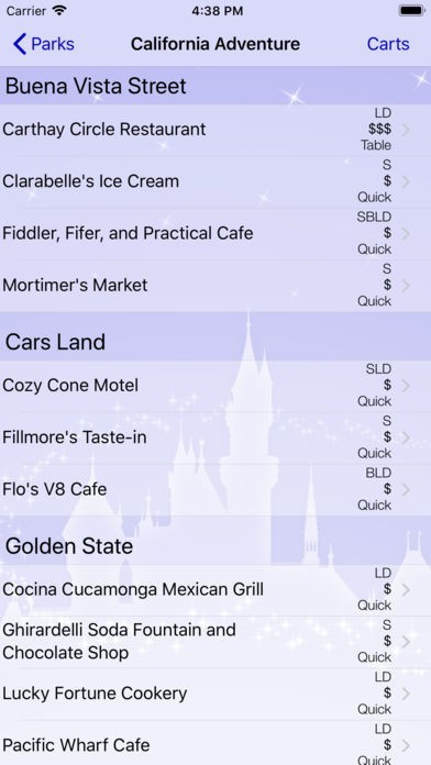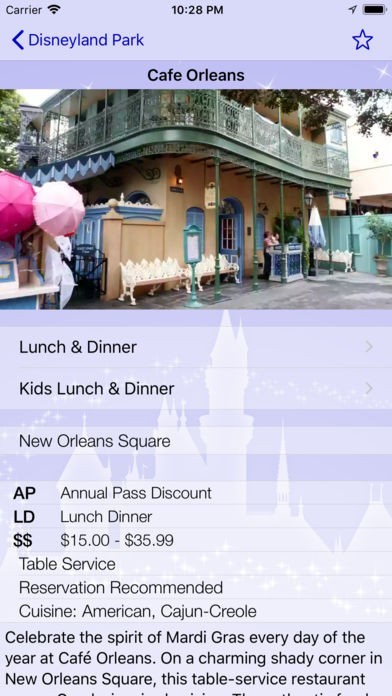 食事も楽しみの一つです。どのレストランでどんなメニューがあるのか、詳しいメニューの説明や値段も分かるので、あちこちのレストランの前まで行って、やっぱり戻って、と広いパーク内をうろうろする必要はありません。