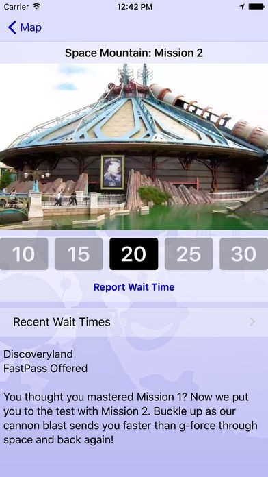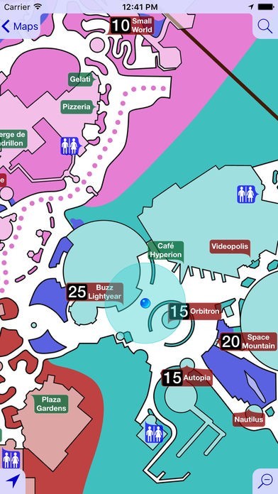 App Storeより引用Interactive maps with wait times, GPS, compass, zoom, search and photos make it easy to navigate the parks and find restaurants, bathrooms, and attractions. Covers Disneyland Paris including Walt Disney Studios.