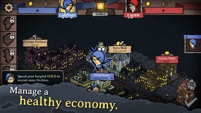 通貨にはユニットを雇用するコインとスキル習得や買収などに使うランタンがあり、建物を支配していると各ターン終了時に獲得できます。有利に進めるために浮浪児をいかに対戦相手から守るかが重要となります。