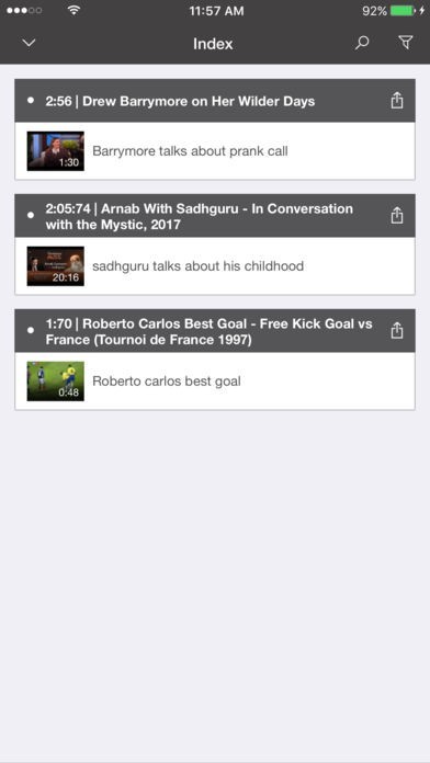indexBook for YouTube is an application that helps you to index your favourite moments in a youtube video and retrieve it quickly. You can add any number of index entries/keywords while watching your video for future reference and the app remembers the time of the scene. You can share the same with your friends/colleagues.