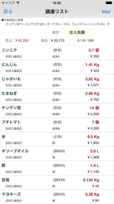 原材料や商品の原価を調べる事が可能で、調達リストから仕入先が管理出来る仕組みも使いやすかった