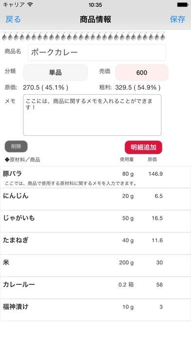 簡単にレシピ原価計算が行えるのがこのアプリ最大の利点だと思います。意外と売価を決めるのには時間もかかってしまうものですが、このアプリではそういった部分の大きな手助けになります。