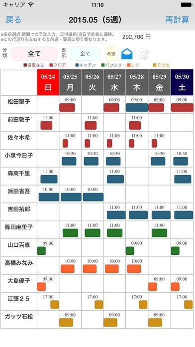 バイトのシフト管理に使えます。誰がどのくらい入っているのかが分かりやすいです。