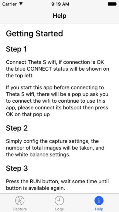 App Storeより引用This app is actively developed by an FX TD (Visual Effects Technical Director), aiming to allow fast and no-brainer preparing 360° images for producing HDRI images efficiently with Theta S, Theta SC or Theta V. Images taken need to be exported to another app or on computer to merge them into the .hdr or the .exr file. There are lots of options to do that, it is suggested to use Photomatrix, PT Gui, Photoshop or Lightroom with plugin.