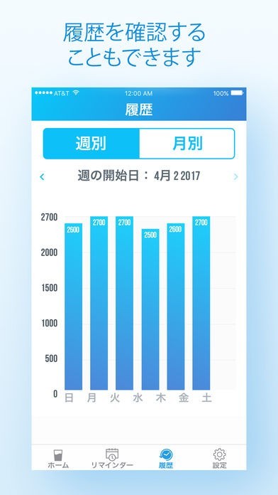 起床時間や就寝時間に合わせて通知時間を調整することができます。また、1日や1週間、1ヵ月の各期間の水分摂取量を記録することができるので、短期間でダイエットをしたい人や長期間で体質を改善させたい人にオススメです。
