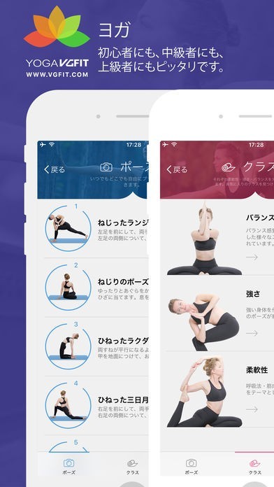 このアプリではバランス力を高めるヨガ、強い体を作るためのヨガ、柔軟性を高めるヨガを学ぶことができます。それぞれに初級コースから上級者コースまであるため豊富なヨガのポーズを行うことができます。それぞれに動画でやり方を解説してくれるのも始めやすいポイントです。