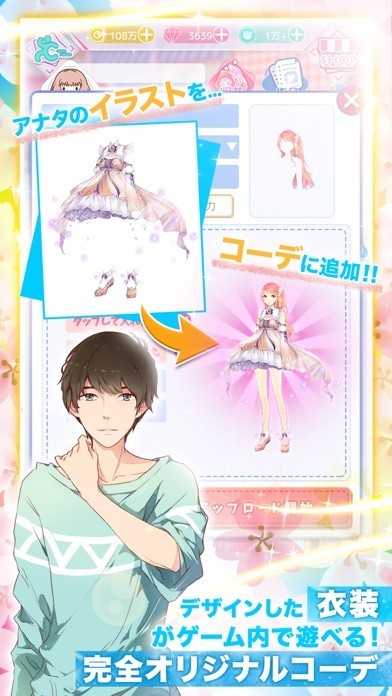 自分や他のユーザーが描いたイラスト衣装で着せ替えを楽しめる機能『デザイナーシステム』。デザイナーショップでは、自分が描いた衣装を他のユーザーに販売したり、他のユーザーの気になる衣装を入手することもできます。自分で描いたり、ショップで気になる衣装をゲットして、とっておきのコーディネートを見つけてね。