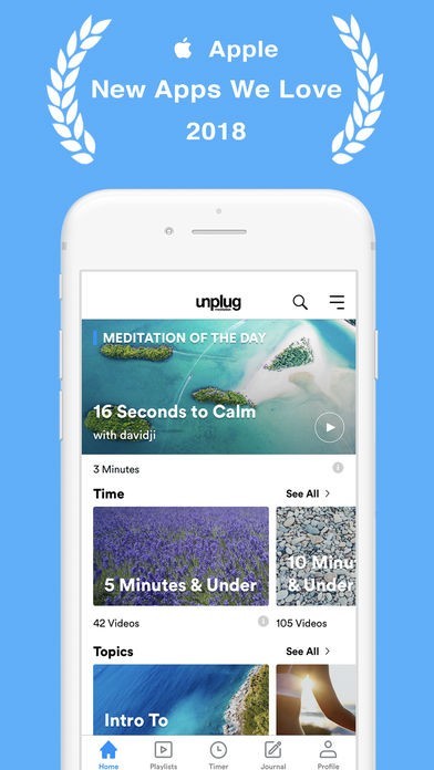 Browse through a range of categories with meditations for every situation. Whether you need better sleep, less stress and anxiety, a quick break at work, or meditation for kids, Unplug has it!