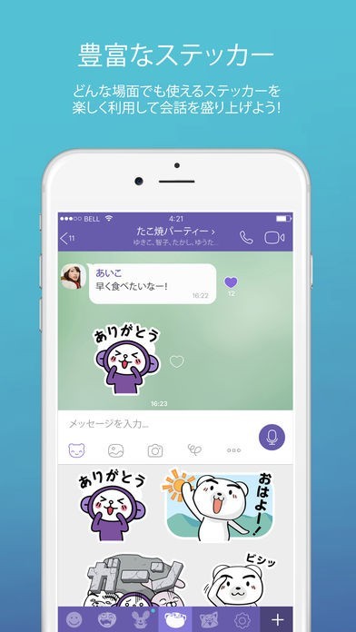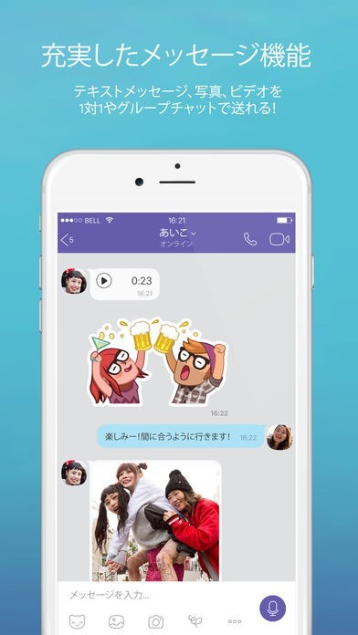 「ViberMessenger」は同じアプリを使っているユーザー同士なら無料で通話することが可能になるアプリです。音声通話だけでなく、ビデオ通話機能も搭載されているので、離れていても相手の顔を見ながらおしゃべりを楽しむことができるようになります。メッセージ機能ではテキストだけでなく、写真やビデオを貼ったり、ステッカーを張り付けることで会話を盛り上げながら楽しめます。見られたくないチャットは一覧から隠したり、ロックすることも可能です。
