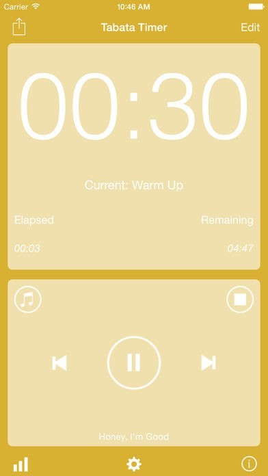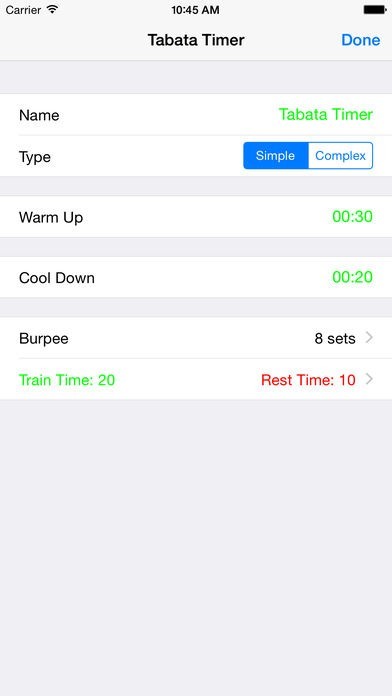Run in foreground, background and screen locked, Tabata Timer Pro allows you to specify an overall time as well as program Cycles, Warm Up time, Train/Rest interval and Cool down time.