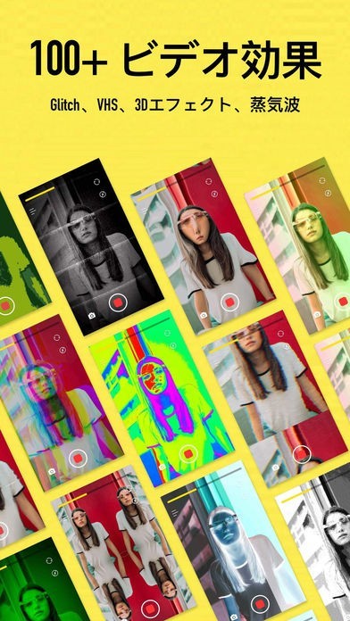 App Storeより引用まぼろし、蒸気など、100以上のGlitch & VHS フィルターでビデオを突出します。Glitch Camを使用すると、簡単に普通のビデオ録画をアートビデオに変えます。ダウンロードして、あなたの創造性を発掘できます。
