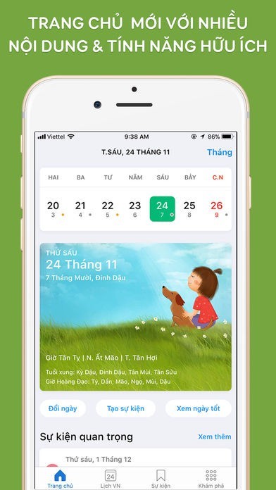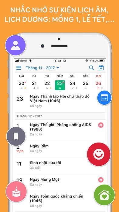 ► Thêm sự kiện, nhắc nhở theo lịch Âm: nhắc ngày giỗ, ngày sinh nhật, cưới hỏi,...