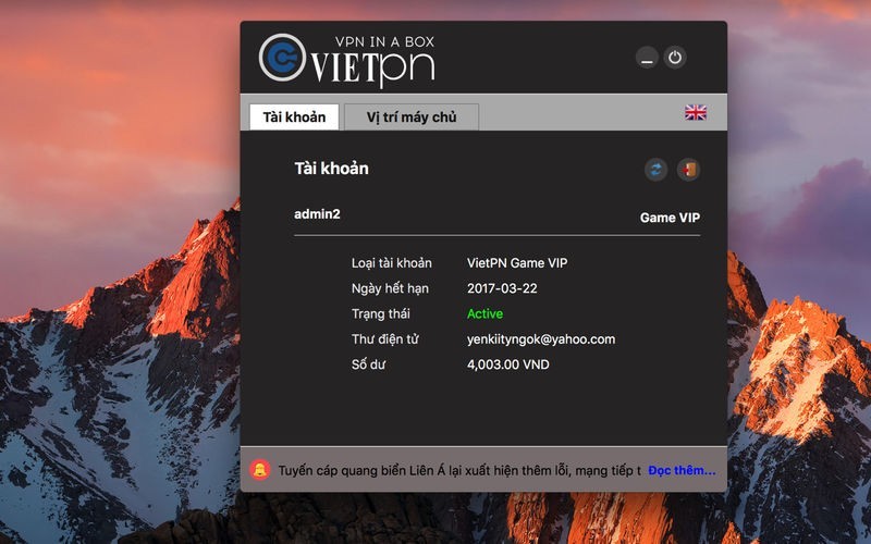 - Bạn bị ISP giới hạn, chặn quyền truy cập đến các trang web hãy yên tâm với VPN VietPN cùng mã hóa 256 bit và xác thực giao thức tiên tiến đảm bảo bạn có thể truy cập lại bình thường các website/địa chỉ bị giới hạn bởi nhà mạng.