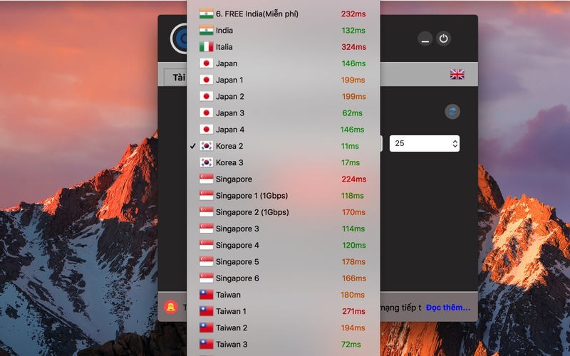 App Storeより引用VPN tốc độ cao với máy chủ tại các quốc gia: Viet Nam, Singapore, Hong Kong, Japan, USA, China...