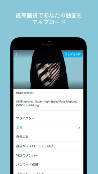 カメラアプリで数分の動画を撮った後に、共有ボタンで当該アプリの名前があれば、そのボタンをタップことによって、カンタンにムービーをアップロードすることができます。