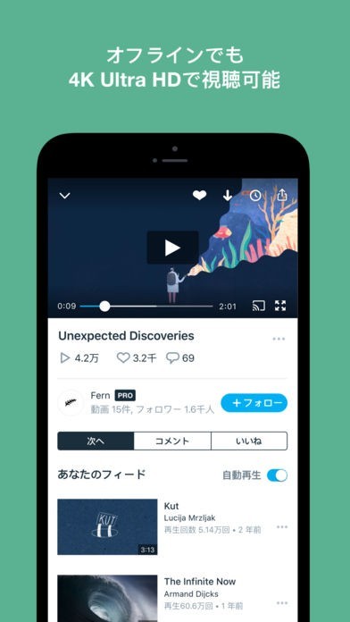 普通の動画配信サービスとは一味違う、画質にチカラを入れまくったサービスです。4K HDのムービーを探して、好みの映像を高画質でキレイな画面で見ることができます。