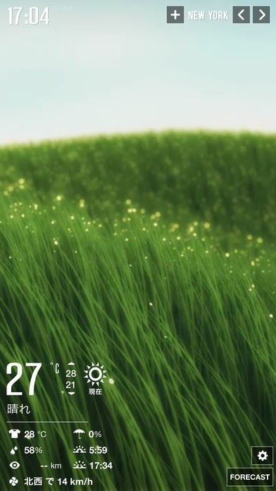 天気を表示してくれる画面のアニメーションの美しさは、このアプリの魅力の1つです。アニメーションは天気に応じて変化するため、スマートフォンの充電中などにオシャレな待機画面として表示しておくのもおすすめです。