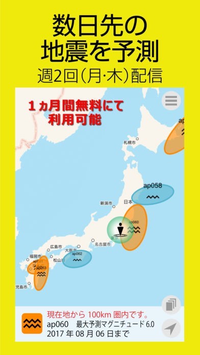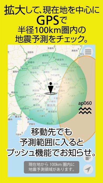 3週間以内の地震予想ができ、位置情報で自分が地震の範囲にいるか連絡してくれる優れもの