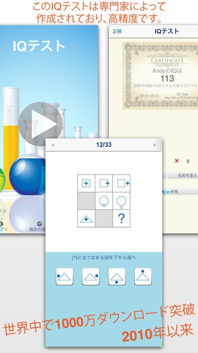 世界中で1000万ダウンロード突破!本格的なIQテストアプリ