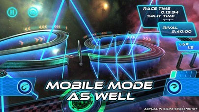 Mobile mode lets you race in outer space! Complete all tracks, unlock all cars and compete online across all 5 lap and Hot lap races! Try controlling the camera view with your device gyroscope to take control of the action!