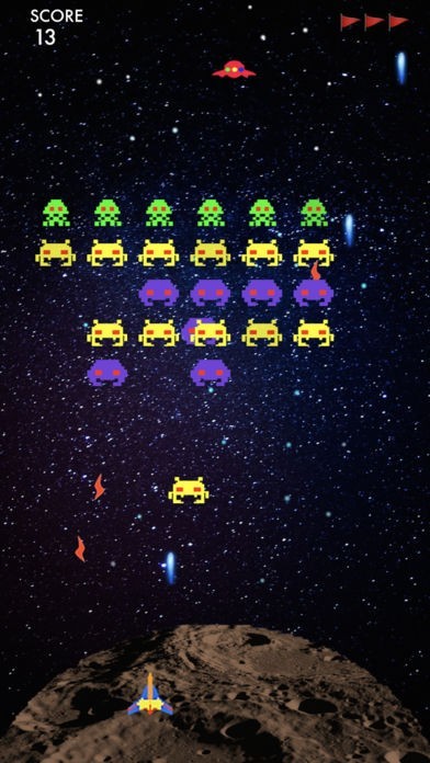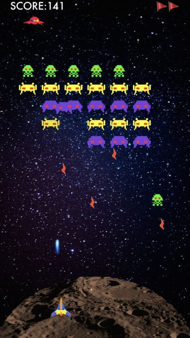 あの昔懐かしいスペースインベーダーとギャラクシアンが一緒になったようなシューティングゲームです。2つのゲームの楽しさが1つのアプリで味わえます。凝ったサウンドエフェクトにも注目です。