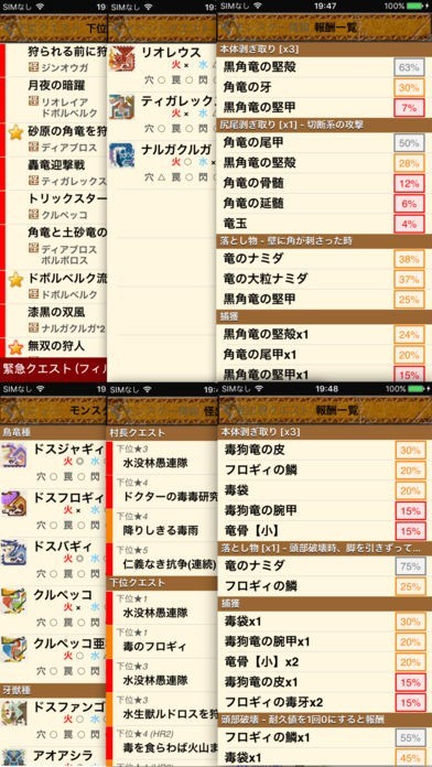 (***)モンスターの報酬(剥ぎ取り・落とし物・捕獲・破壊・機率)