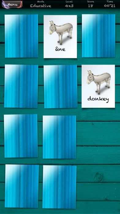 A Two-Player modes is available, and a great Educative mode let you chose the cards images you want to play with, to display or not text below images and to read loud the text with speech synthesis. Moreover, you can learn spanish or french by chosing different languages for first and second card. A really great valuable mode!