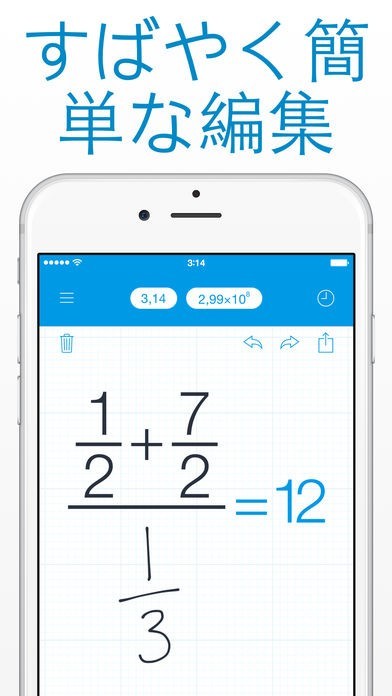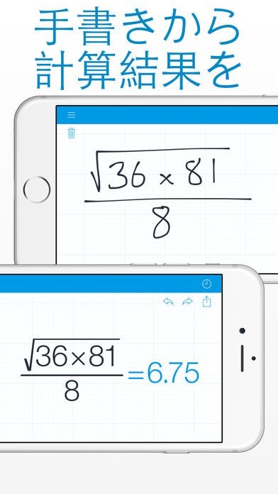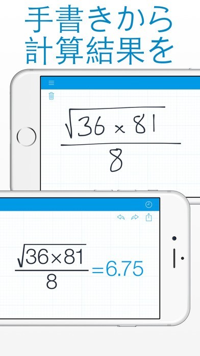 スマートフォンの画面上に手書きで数式を書き込むことが可能な電卓アプリ!!