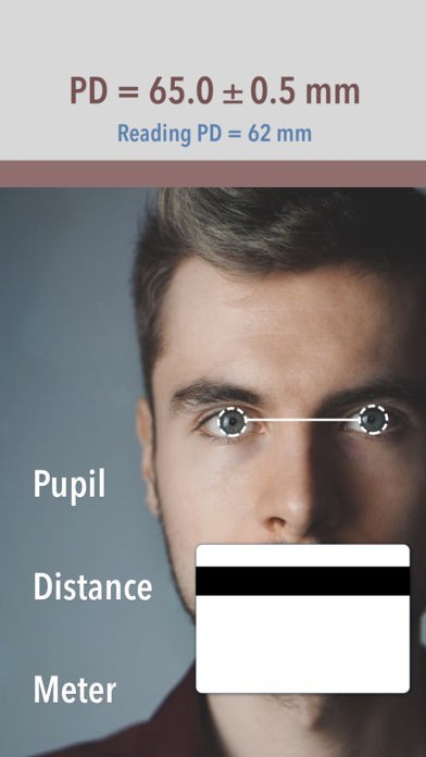 See detailed step-by-step instructions in the app. To get accurate and consistent pupillary distance two successive pictures has to be taken and marked according to the guide. Then the app estimates average distance between eyes.